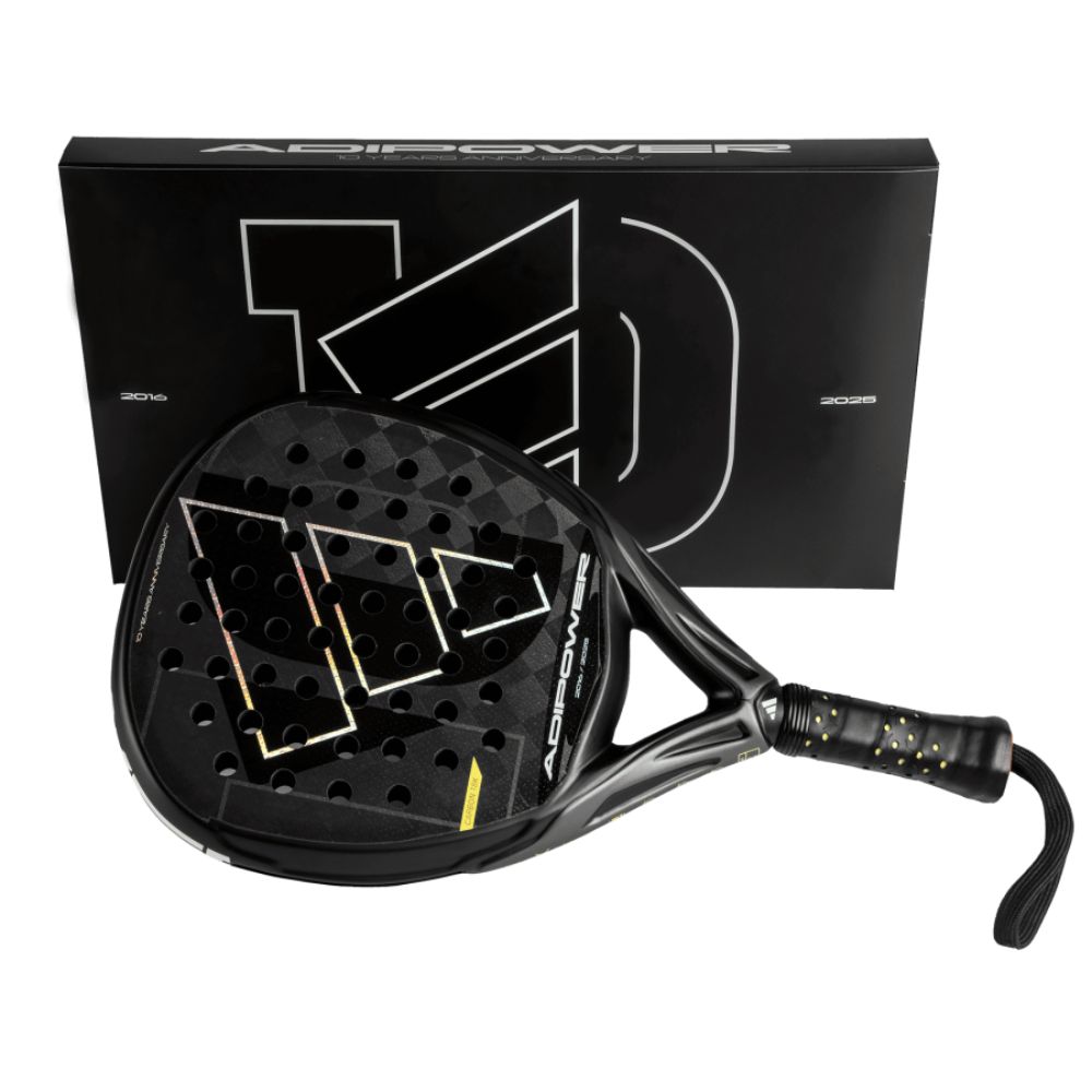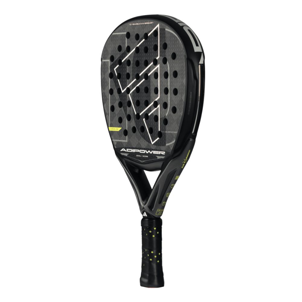 Adidas Adipower 10th Anniversary Padelio Rakete – riboto leidimo raketė, skirta žaidėjams, siekiantiems galios ir kontrolės balanso. 3K anglies paviršius, Soft Performance EVA ir deimanto forma leidžia žaisti agresyviai bei tiksliai kiekviename taške.
