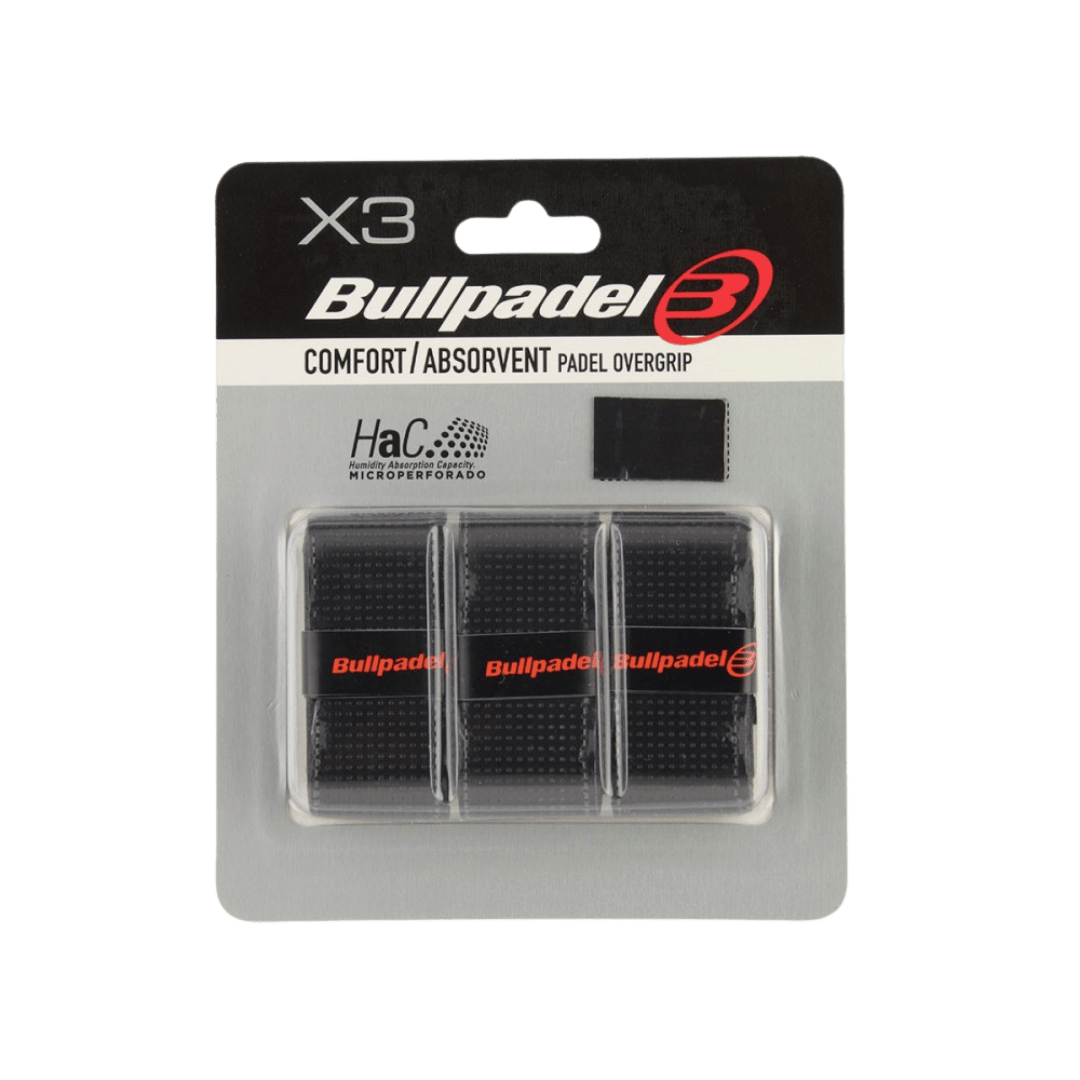 Bullpadel Comfort/Absorvent Black Padelio Overgripai skirti žaidėjams, ieškantiems komforto, stabilaus sukibimo ir efektyvios drėgmės kontrolės — idealus pasirinkimas tiek treniruotėms, tiek mačams.