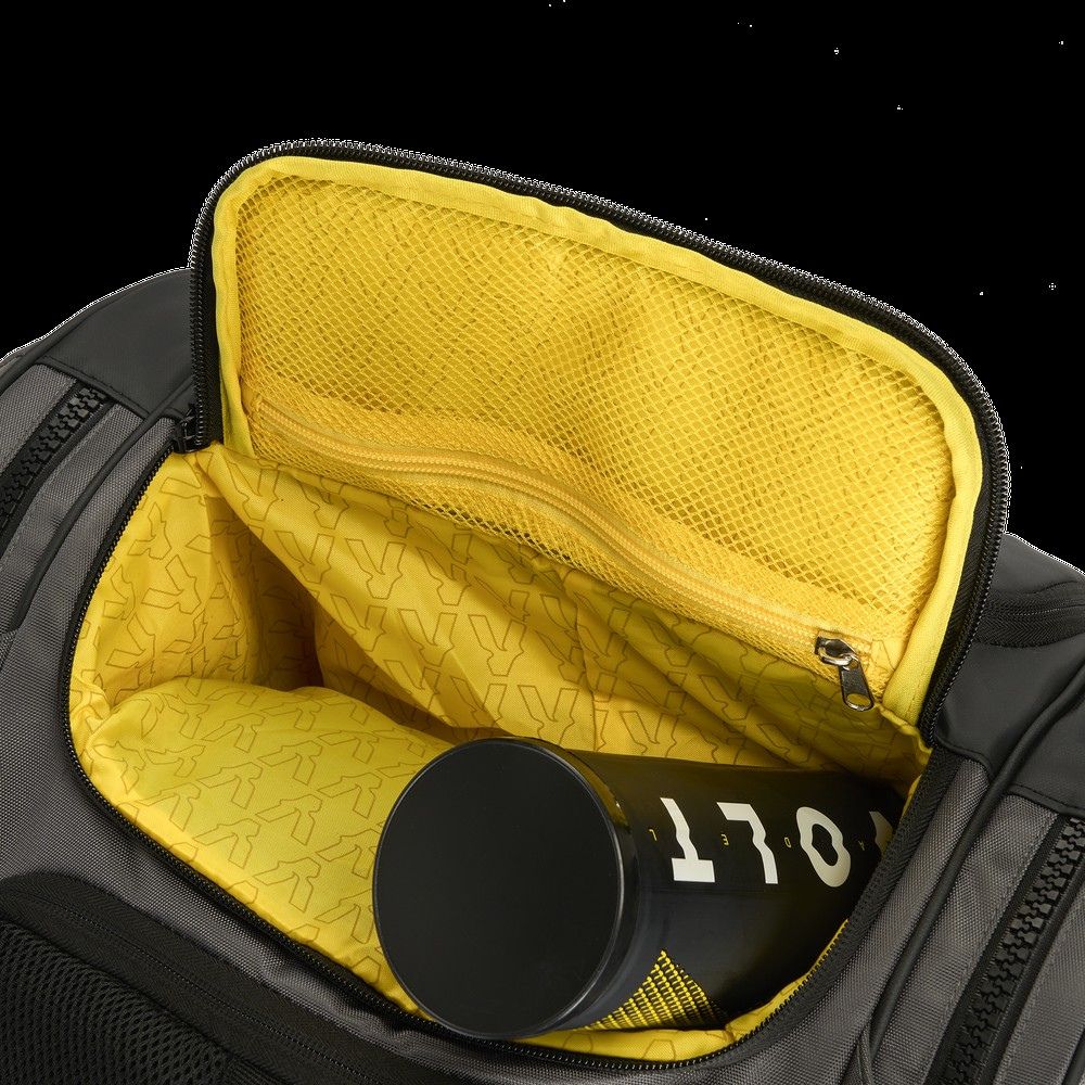Volt XL Grey Padelio Krepšys išsiskiria didele talpa, komfortu ir moderniu stiliumi. Jis turi erdvų pagrindinį skyrių bei du šoninius skyrius, iš kurių vienas su termo apsauga – saugiam iki 4 rakečių laikymui, taip pat papildomas kišenes kamuoliukams, vandens buteliui ir smulkiems asmeniniams daiktams.